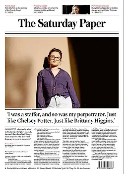 ![]() Front page of The Saturday Paper, Issue #337, February 20, 2021 | |