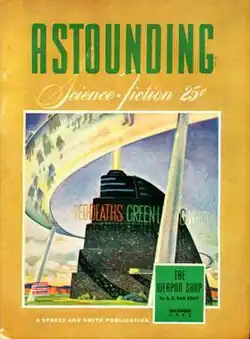 "The Weapon Shop" is a science fiction short story by Canadian writer A. E. van Vogt, originally published in the December 1942 issue of Astounding Science Fiction. It was developed from a much shorter 1941 story, "The Seesaw". It was, in turn, used as the basis for a portion of the 1951 fix-up novel The Weapon Shops of Isher.