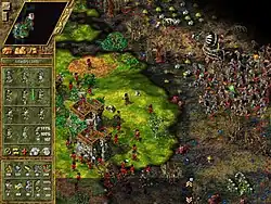 As in The Settlers III, the game features magic, whereby each race can call upon their deities for economic and/or military assistance. Once the player has both manna and priests, they have finite access to a number of spells, the nature of which depends on the race.[37] These spells include tuning fish to stone, turning enemy soldiers to allies (Romans), turning stone to iron, temporarily freezing enemies (Vikings), turning wood to gold, turning enemy bowmen into butterflies (Mayans),[38] turning sulphur to iron, and turning enemy soldiers into normal settlers (Trojans).[39]