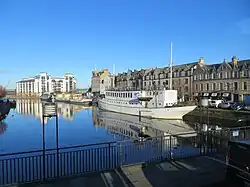 It edges the final section of the Water of Leith before it flows through Leith Docks into the Firth of Forth.