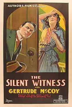 The Silent Witness is a 1917 American silent independent drama film directed by Harry Lambart and starring Gertrude McCoy, Frank O'Connor and Jack Sherrill.[1] It was based on the 1916 Broadway play The Silent Witness by Otto Hauerbach.
