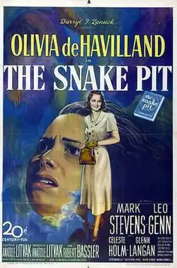 The Snake Pit is a 1948 American psychological drama film directed by Anatole Litvak and starring Olivia de Havilland, Mark Stevens, Leo Genn, Celeste Holm, Beulah Bondi, and Lee Patrick.[4][5] Based on Mary Jane Ward's 1946 semi-autobiographical novel of the same name, the film recounts the tale of a woman who finds herself in an insane asylum and cannot remember how she got there.