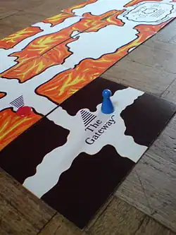 The Sorcerer's Cave is a fantasy board/card game designed by Terence Peter Donnelly and first published in 1978. Though greatly simplified, it was inspired by the fantasy role-playing game Dungeons & Dragons.[1] Unlike D&D, however, Sorcerer's Cave does not require "Dungeon Master" or referee. One of its strengths is that it can be played solo or competitively, as well as cooperatively. Another is the diplomatic aspect of interactions between players with changing agendas. In general, player(s) gather and control a party (or parties) of adventurers who explore a multi-level dungeon that is randomly generated by drawing area cards from a deck. Encounters include special rooms, traps, monsters, allies, magical items and treasures.