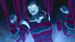 ![]() Avatar Korra fights dark spirits at the spirit portal near the South Pole. | |