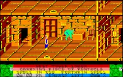 Pendragon's only form of defence in the game is his ability to utilise various magical spells, in which the correct spell is required in order to defeat certain enemies.[1][3] If the player is hit by an attack of any enemy in the castle, Pendragon will lose energy, or in some cases, time will be deducted from the countdown timer.[1] If the player completely runs out of energy or fails to destroy the Staff of Karnath before midnight, the game will end.[1]