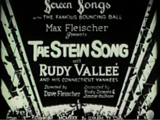 The Stein Song is a 1930 animated short film which is presented by Max Fleischer and was directed by Dave Fleischer.[1] The film, which was animated by Rudy Zamora and Jimmie Culhane,[1] features a sing-along version to "The Stein Song",[1] which was written by Lincoln Colcord and was originally published in 1910.[2] The song is also the school song for the University of Maine.[3]