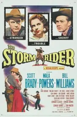The Storm Rider is a 1957 American Western film directed by Edward Bernds, written by Edward Bernds and Don Martin, and starring Scott Brady, Mala Powers, Bill Williams, John Goddard, William Fawcett and Roy Engel. It is based on the short story "Longrider Jones" by L. L. Foreman, from the book Rider's West. The film was released in March 1957, by 20th Century Fox.[1][2][3]