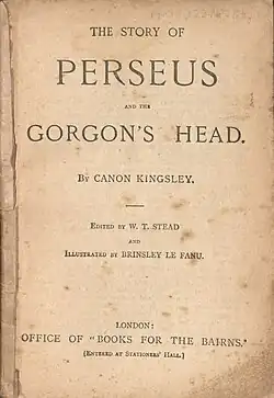 The Story of Perseus and the Gorgon’s Head is a short novel published in 1898[1] for the series Books for the Bairns. The story was edited by W.T. Stead and taken from Charles Kingsley, who originally wrote the story with the name Perseus, the Gorgon Slayer and published it in his book The Heroes, or Greek fairy tales in 1855.[1][2]