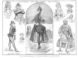 It received its American premiere in December 1878 at the Bush Street Theater in San Francisco, California, where it had a short run under the management of Alice Oates.[3] Blanche Roosevelt produced it at the Union Square Theatre in New York with her Blanche Roosevelt English Opera Company from 14 to 25 September 1880 for a run of 13 performances with Leonora Braham as Dolly and with Cellier conducting.[6] The work returned to Manchester in 1880, where it played at the Theatre Royal with Alice May as Dolly, Fred. J. Stimson as Flint, George Fox as the Sultan, Allen Thomas as Sneak and Frederic Wood as Peter.[7]