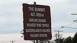 - ^ "The Summit – railway station in the Southern Downs Region (entry 34151)". Queensland Place Names. Queensland Government. Retrieved 25 January 2022.