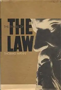 The Tables of the Law (German: Das Gesetz) is a 1944 novella by German writer Thomas Mann. It is a dramatic retelling of the Biblical story of Moses contained in the Book of Exodus, although some of the laws which Moses prescribes for his followers are taken from Leviticus. It was the only story that Mann was ever commissioned to write, and he finished it in just eight weeks, beginning on January 18, 1943, and ending on March 13, 1943.[1] Publisher Armin L. Robinson, believing the Ten Commandments to be the basis on which civilization was founded, wanted to make a movie detailing the Nazis' "desecration of the Mosaic Decalogue".[2] Instead, he settled on a book, entitled The Ten Commandments: Ten Short Novels of Hitler's War Against the Moral Code, with ten authors, one for each commandment. Mann's novella, which he was paid $1,000 to write, was originally meant to be the introduction to the volume, but Robinson liked it so much that he decided to make it the first story, under the heading "Thou Shalt Have No Other God Before Me".[2] Mann considered his story to be greatly superior to that of his fellow contributors, and he considered the overall book a "failure".[3]