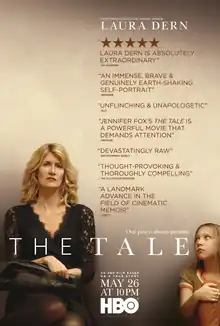 The Tale is a 2018 American drama film written and directed by Jennifer Fox and starring Laura Dern, Ellen Burstyn, Jason Ritter, Elizabeth Debicki, Isabelle Nélisse, Common, Frances Conroy, and John Heard. It tells the story of Fox's own child sexual abuse and her coming to terms with it in her later life. It premiered at the 2018 Sundance Film Festival[1][2] and aired on HBO on May 26, 2018.[3] In a 2023 interview with The New York Times, Fox revealed the identity of the man who abused her: Ted Nash, a two-time Olympic medalist in rowing and nine-time Olympic coach.[4]