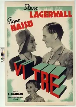 The Three of Us (Swedish: Vi tre) is a 1940 Swedish drama film directed by Schamyl Bauman and starring Sture Lagerwall, Signe Hasso and Stig Järrel.[1] It was shot at the Centrumateljéerna Studios in Stockholm and on location around the city including the Central Station. The film's sets were designed by the art director Arthur Spjuth. It is a sequel to the 1939 film The Two of Us.