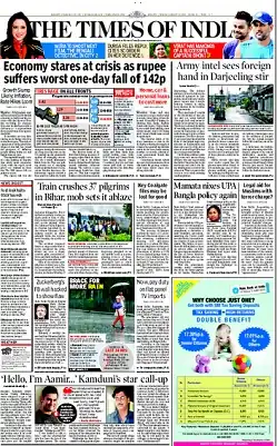 20 August 2013 front page of The Times of India (Kolkata edition)