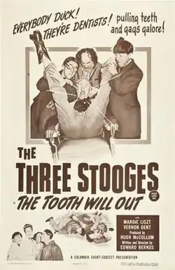 The Tooth Will Out is a 1951 short subject directed by Edward Bernds starring American slapstick comedy team The Three Stooges (Moe Howard, Larry Fine and Shemp Howard). It is the 134th entry in the series released by Columbia Pictures starring the comedians, who released 190 shorts for the studio between 1934 and 1959.