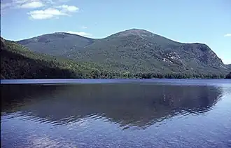 ![]() Traveler Mountain, from Lower South Branch Pond, to the northwest | |