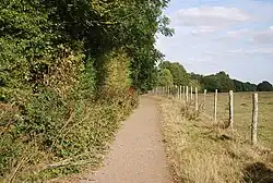 The trail starts at Tonbridge Castle, then leads through Haysden Country Park (around Barden Lake), then through the village of Lower Haysden, it then passes under the Tonbridge by-pass (part of the A21) via a quiet lane, then it uses a bridleway to link back to a portion of Haysden Country Park. It meets the 'Eden Valley Walk' (along distance path between Penshurst and Edenbridge). They then head along 'The Straight Mile' which is the remains of a canal built in the 1829 to join Penshurst to the navigable part of the River Medway. The canal was never completed or ever used.[1] Then mile ends near Ensfield Road which passes over the River Medway. The route then heads along a bridleway to Killick's Bank farm. The route then heads to a section of the route with the only slight climb of the route, heading up to Wells Place Farm. The farm is on the Penshurst Estate and the route then heads down to Penshurst Place, the destination of the route.[2]