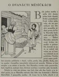 "The Twelve Months" is a Czech fairy tale, which was first mentioned by a Czech writer, scholar, physician, lexicographer, canon of the St. Vitus Cathedral in Prague and a master of the University of Prague in the 14th century - mistr Klaret/Bartoloměj z Chlumce,[1] who mentions the fairy tale as a preaching exemplum.[2]