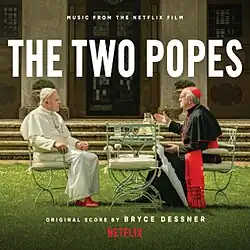 The Two Popes (Music from the Netflix Film) is the soundtrack album to the 2019 film The Two Popes directed by Fernando Meirelles, starring Anthony Hopkins as Pope Benedict XVI and Jonathan Pryce as Cardinal Jorge Mario Bergoglio. The National's Bryce Dessner composed the film score which was released through Milan Records on December 6, 2019.
