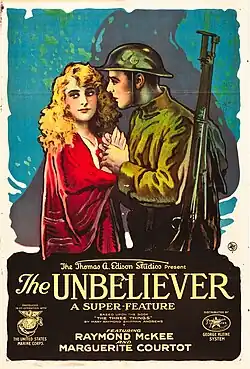 The Unbeliever is a 1918 American silent propaganda film made towards the end of World War I. It was directed by Alan Crosland for the Edison Company towards its last days as a functioning film-making company. It stars Raymond McKee and Marguerite Courtot, who married a few years later, and Erich von Stroheim.[1][2]
