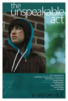 The Unspeakable Act is a 2012 American coming-of-age drama film written and directed by Dan Sallitt. It stars Tallie Medel as Jackie Kimball and Sky Hirschkron as Matthew Kimball, with Aundrea Fares, Kati Schwartz, and Caroline Luft in supporting roles. Framed by her voice-over narrative, the plot focuses on Jackie's unrequited romantic love for her brother Matthew.