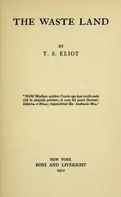 - Eliot, T. S. (1922). (1st ed.). New York: Horace Liveright – via Wikisource.