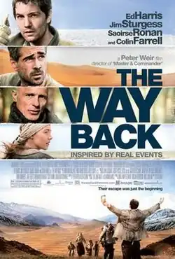 The Way Back is a 2010 American survival film directed by Peter Weir, from a screenplay by Weir and Keith Clarke. The film is inspired by The Long Walk (1956), the memoir by former Polish prisoner of war Sławomir Rawicz, who claimed to have escaped from a Soviet Gulag and walked 4,000 miles (6,400 km) to freedom in World War II. The film stars Jim Sturgess, Colin Farrell, Ed Harris, and Saoirse Ronan, with Alexandru Potocean, Sebastian Urzendowsky, Gustaf Skarsgård, Dragoș Bucur and Mark Strong.