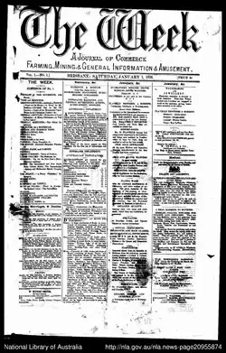 - ^ "Masthead". The Week. Vol. I, no. 1. Queensland, Australia. 1 January 1876. p. 1. Retrieved 15 May 2017 – via National Library of Australia.