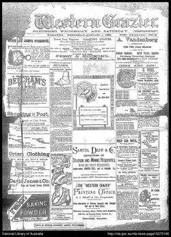 - ^ "Advertising". Western Grazier. Wilcannia, NSW. 1 January 1896. p. 1. Retrieved 25 July 2014 – via National Library of Australia.