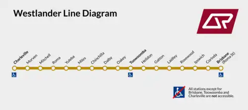 The Westlander is an Australian passenger train operated by Queensland Rail on the Main and Western lines between Brisbane and the outback town of Charleville.
