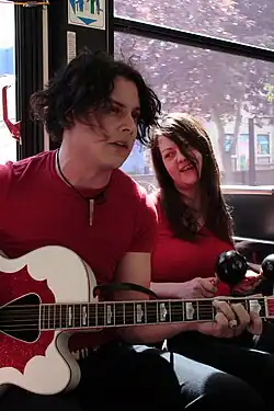 ![]() The White Stripes performing at the Wireless Festival in 2007. From left to right: Jack White and Meg White. | |