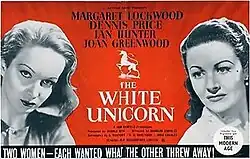 The White Unicorn is a 1947 British drama film directed by Bernard Knowles and starring Margaret Lockwood, Joan Greenwood, Ian Hunter and Dennis Price.[3] Kyra Vayne appeared as the singer. It was made at Walton Studios by the independent producer John Corfield, and released by General Film Distributors. The film's sets were designed by Norman G. Arnold.[3] It was also known as Milkwhite Unicorn and Bad Sister (its title in the US).[4]