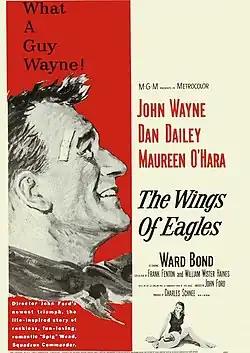 The Wings of Eagles is a 1957 American Metrocolor film starring John Wayne, Dan Dailey and Maureen O'Hara, based on the life of Frank "Spig" Wead and the history of U.S. Naval aviation from its inception through World War II.[3] The film is a tribute to Wead (who died 10 years earlier, in 1947 at age of 52) from his friend, director John Ford, and was based on Wead's "We Plaster the Japs", published in a 1944 issue of The American Magazine.[4]