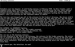 The Witness is an interactive fiction video game published by Infocom in 1983. Like Infocom's earlier title Deadline, it is a murder mystery. The Witness was written in the ZIL language for the Z-machine, which allowed it to be released simultaneously on many systems. It is Infocom's seventh game.