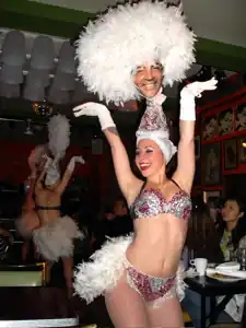 The three sisters, who had danced and performed informally since childhood, got their professional start during the late 1990s swing revival craze, as a side act of the popular swing band The Flying Neutrinos.[1] They have since taken part in burlesque-style performances and revues on the East Coast and throughout the United States. The sisters dance in a wide and eclectic variety of styles covering much of twentieth century dance, but often in a high-energy "go-go" style to instrumental Rock and Roll. The sisters perform in a variety of exotic costumes featuring ostrich feathers, tassels, sequins, and fancy headdresses, many of which they design themselves.[2]