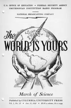 TWIY was the first radio program produced by the Smithsonian Institution, in conjunction with United States Department of the Interior Office of Education and was one of the most successful educational radio programs of the 1930s.[1] Out-of-work actors and musicians presented the 303 programs which covered various aspects of the Smithsonian's collections and research.[1][3] Starting in 1939, the program came with additional print materials which could be requested for ten cents each.[4] The Smithsonian filled 800,000 requests for supplementary materials, and has 9,000 pages of educational supplements in their archives.[3][2] The scripts for the show were also made available for people who wished to air their own programs, and were provided by request along with a production manual, handbook of sound effects and a bibliography.[2] The program was incredibly popular, generating over half a million letters by 1941.[3]