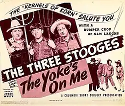 The Yoke's on Me is a 1944 short subject directed by Jules White starring American slapstick comedy team The Three Stooges (Moe Howard, Larry Fine and Curly Howard). It is the 79th entry in the series released by Columbia Pictures starring the comedians, who appeared in 190 shorts at the studio between 1934 and 1959.