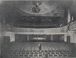 This new theatre was very small on a small site and could only seat 881 in total, with 197 in the stalls, 220 in the pit, 84 in the Dress Circle, and 350 in the gallery at the rear of the dress circle with its own entrance from Gordon Road. There were two boxes which seated 30 in total on each side at Dress Circle level, with elaborate plasterwork on the dress circle and box fronts. The proscenium opening was 24 feet wide and 26 feet deep with the flies 32 feet high. In addition there were eight dressing rooms, a manager's office and a band room with the stalls, pit and circle each having its own licensed bar.[6]