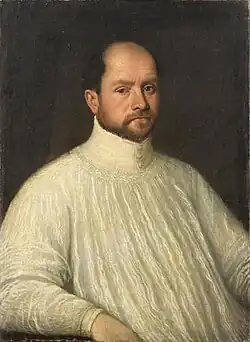 The title page of the book refers to it as 'Hoc Amphiteatrum Picturarum' ('This amphitheatre of pictures').[4] The publication is now often referred to as Theatrum pictorium ('Theatre of Paintings').[1] The cover of the Theatrum pictorium shows a bust portrait of the Archduke with a dedication to the Archduke as well as introductions in Latin, French, Spanish and Dutch. The title page clarifies that Teniers funded the publication project out of his own pocket.[5] The Theatrum pictorium was published in four languages (Latin, French, Dutch, and Spanish) and further editions appeared in 1673 and 1688 and in the 18th century. The last edition was published in 1755.[6][7]