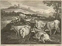 Example of an engraving from the first, 1660, edition of the Theatrum Pictorium by Jan van Troyen after the Bassano painting