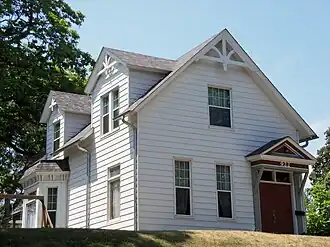 The Theodore Jansen House is a historic building located in the West End of Davenport, Iowa, United States. At the time this house was built in 1888, Theodore Jansen worked at American Hose Manufacturing Company as a blacksmith. In 1890 he started working for a carriage manufacturer, Young, Harford and Company.[2] The Vernacular Queen Anne style residence is a 1½-story, front gable cottage with large wall dormers and a wing off the back. It features stickwork aprons on the main and the dormer gables. There is also a bracketed polygonal window bay on the first floor. It has been listed on the National Register of Historic Places since 1983.[1]