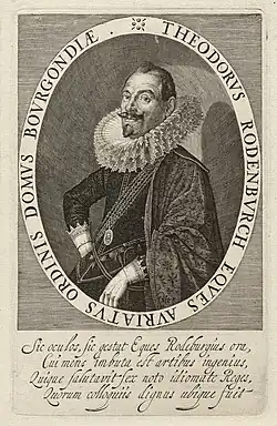 Theodore Rodenburgh (baptised 29 January 1574, Antwerp - 1644) was a diplomat and playwright of the Dutch Golden Age. His first name is sometimes spelled Theodoor, and occasionally the nick-name Dirk is seen; his last name is sometimes spelled Rodenburg or Rodenberg.