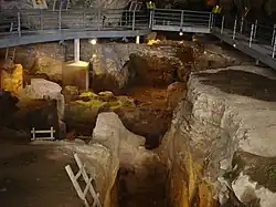 Theopetra Cave is a limestone cave located in Theopetra village of Meteora municipality, Thessaly, Greece. It is situated on the northeast side of a limestone rock formation that is 3 km (2 mi) south of Kalambaka.[1] The site has become increasingly important as human presence is attributed to all periods of the Middle and Upper Paleolithic, the Mesolithic, Neolithic and beyond, bridging the Pleistocene with the Holocene.[2]