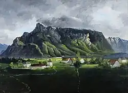- View of the Untersberg, signed and dated lower left “1827 à Salzburg, Th. de Holbein”, oil on canvas, 32.5 × 46 cm