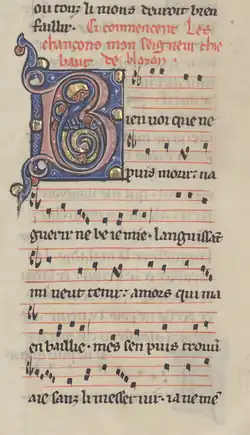 - ^ The first six lines of Quant je voi are given mensural notation in the Chansonnier Cangé.