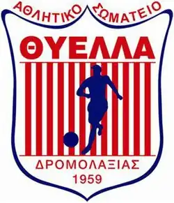 Thiella Dromolaxia (Greek: Θύελλα Δρομολαξιάς) is a Cypriot association football club based in Dromolaxia, located in the Larnaca District. Its colours are red and blue.[1] It has 1 participations in Cypriot Fourth Division (2006–07 Cypriot Fourth Division).[2]
