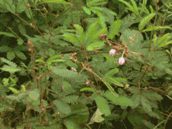 Many other Fabaceae react to touch with the same rapid leaf closure motion. The pea vine thigmonastically closes its leaves around a support. Catclaw Brier, a prairie mimosa, native to North America, shuts its leaves on contact. The plant is attractive to herbivores, and this behavior presumably provides protection against grazing.