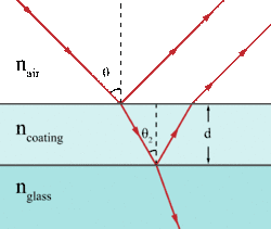 An anti-reflection coating eliminates reflected light and maximizes transmitted light in an optical system. A film is designed such that reflected light produces destructive interference and transmitted light produces constructive interference for a given wavelength of light. In the simplest implementation of such a coating, the film is created so that its optical thickness is a quarter-wavelength of the incident light and its refractive index is greater than the index of air and less than the index of glass.