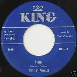 "Think" is a rhythm and blues song written by Lowman Pauling and originally recorded by his group the "5" Royales. Released as a single on King Records in 1957, it was a national hit and reached number nine on the U.S. R&B chart.[1]