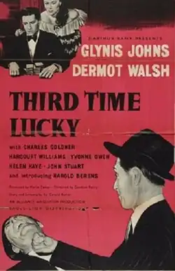 Third Time Lucky (also known as They Cracked Her Glass Slipper [1]) is a 1949 British crime drama film directed by Gordon Parry and starring Glynis Johns, Dermot Walsh and Charles Goldner; Michael Hordern appears in a small uncredited role.[1][2] The film was produced by Mario Zampi and released by General Film Distributors. It was written by Gerald Butler based on his 1941 novel They Cracked Her Glass Slipper.